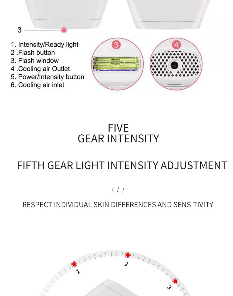 • Light Intensity: 5 Adjustable Levels – Choose the best IPL intensity for your skin type