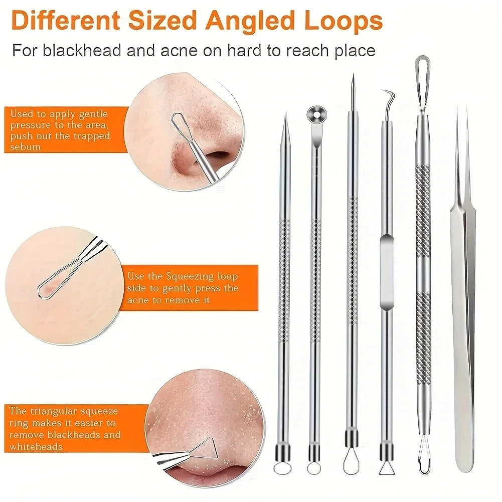 - 6 specialized tweezers – tackle pimples, blackheads, and whiteheads with precision