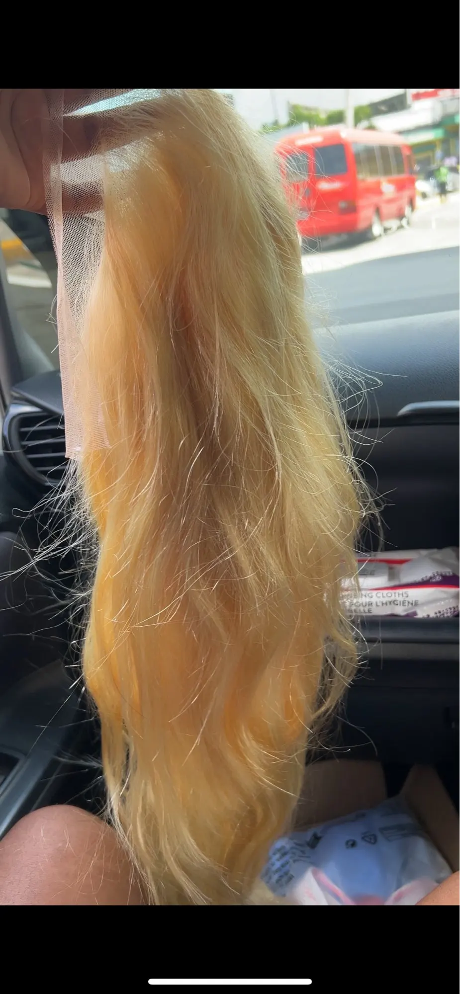 Shipping was extremely fast came in 2 days . Hair is super soft , will be buying again! I saturated it in honey brown dye & purple shampoo with hot boiling water to eliminate the white girl blonde & it came out so pretty. True to length this is 32 inch’s , no bad smell , & lace is super full can style in multiple ways. Just buy it girl trust me 🥹 .