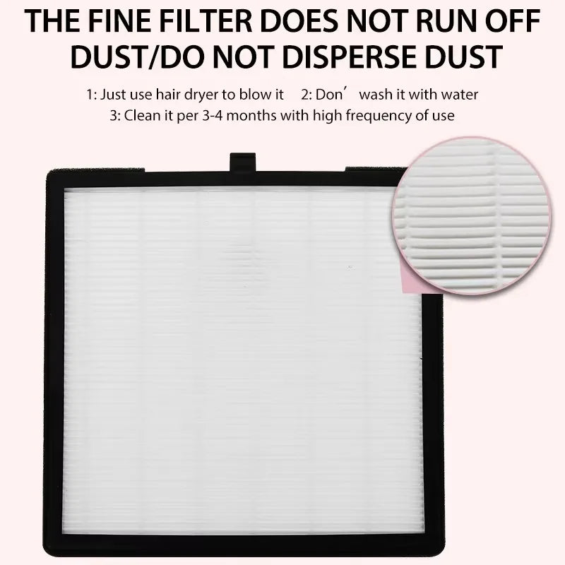 - 💨 Strong Suction Power: Efficiently captures fine nail dust and gel debris in seconds.