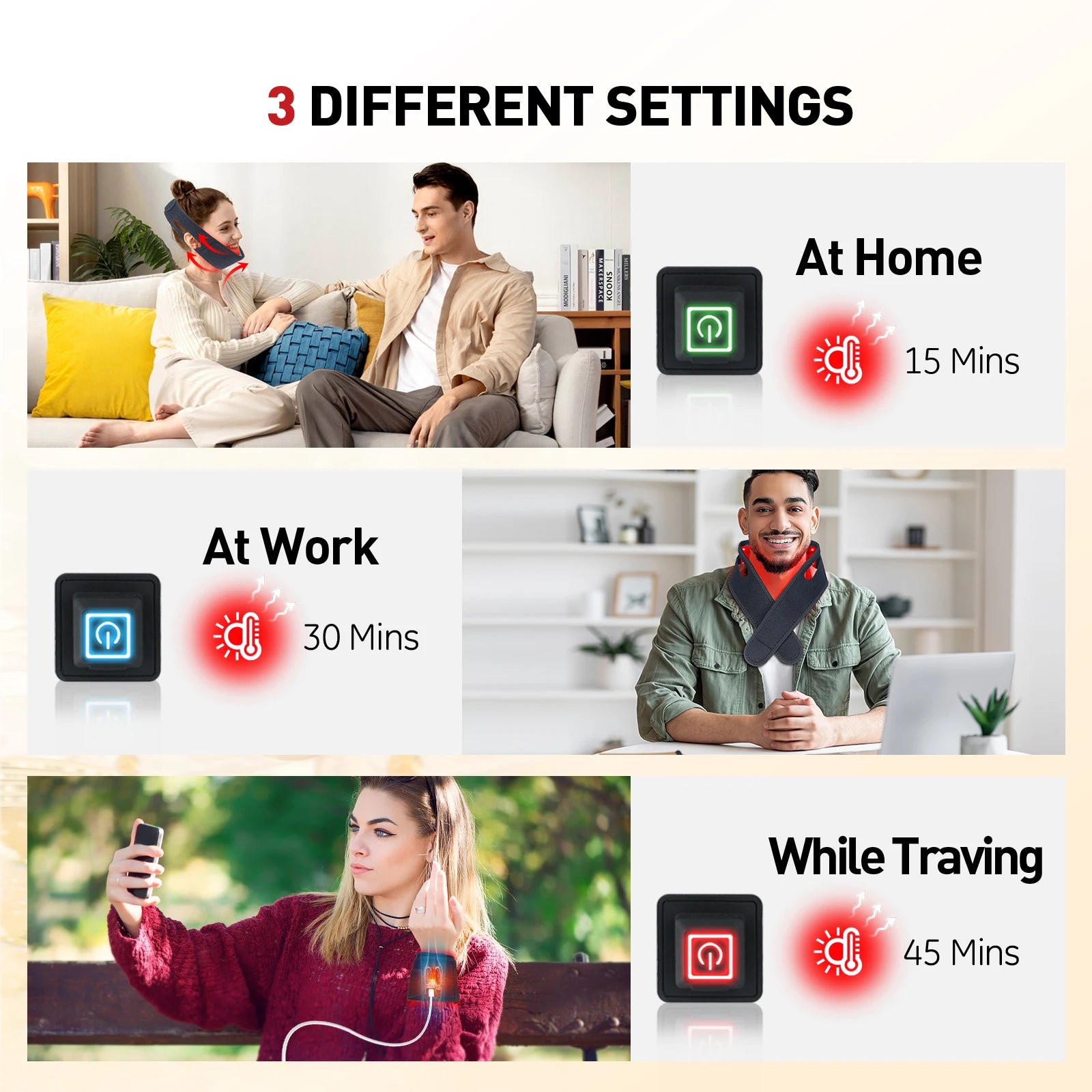 - 850nm infrared light generates gentle heat for neck pain relief